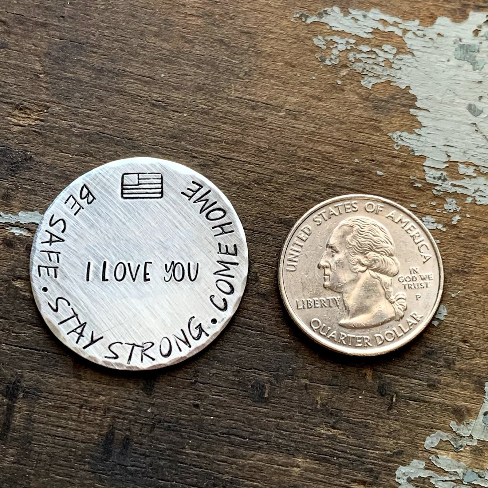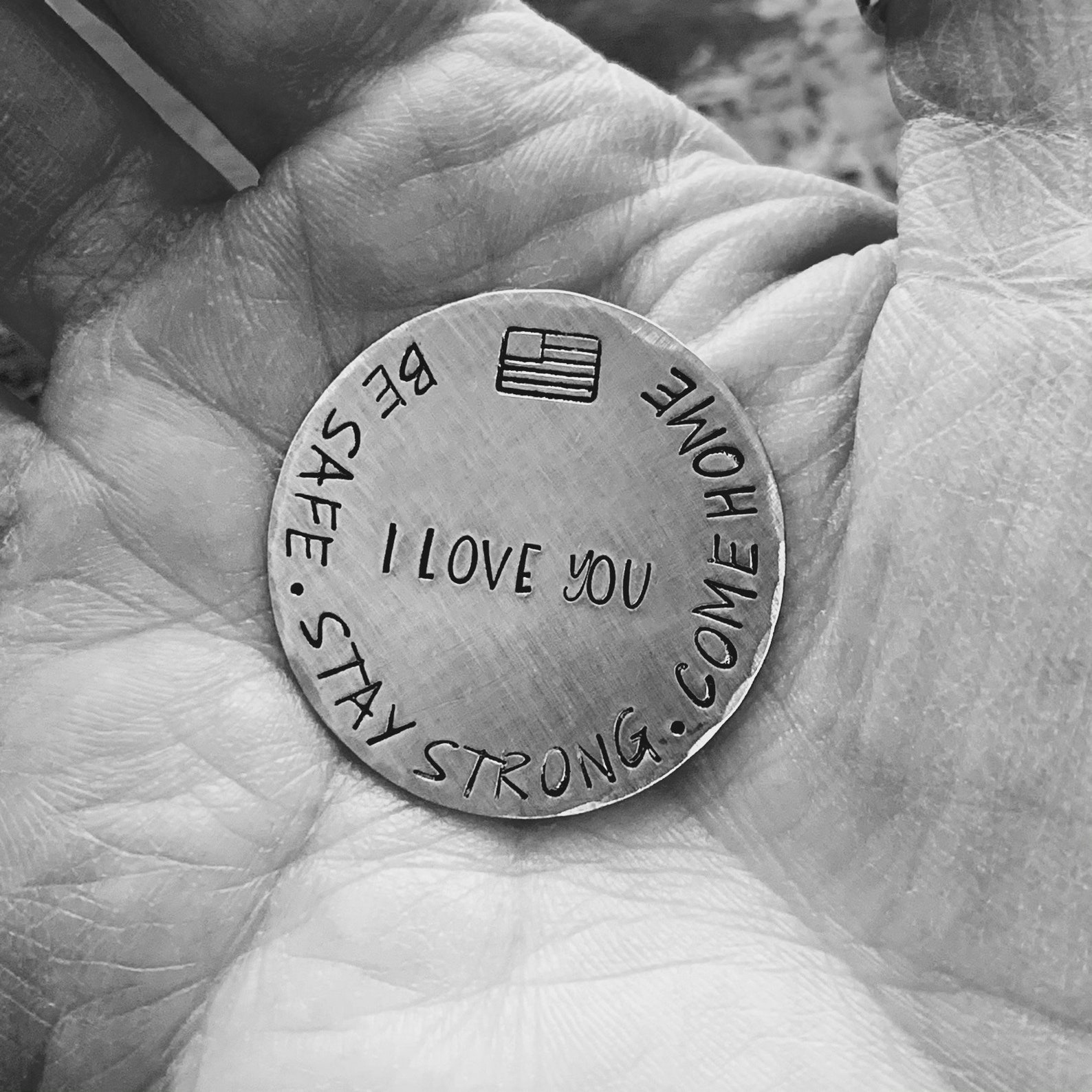 Each pewter token is carefully hand-stamped with heartfelt messages, creating a cherished keepsake that can be carried close every day.